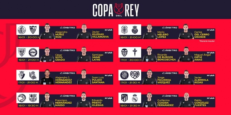 国王杯18决赛裁判:费尔南德斯执法马德里德比,梅索主裁巴萨