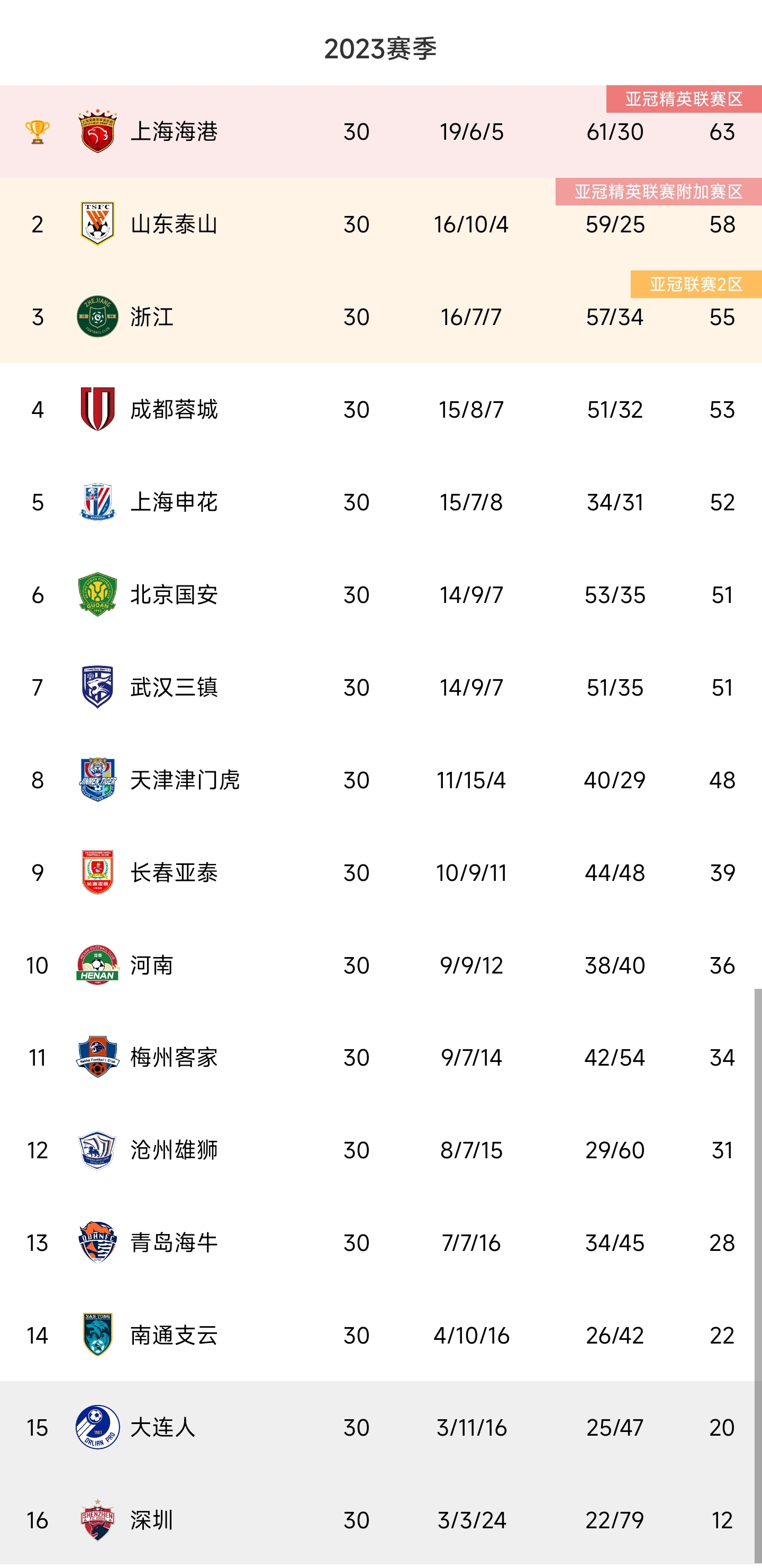 中国足球赛季结束!海港夺中超冠军,申花夺足协杯冠军